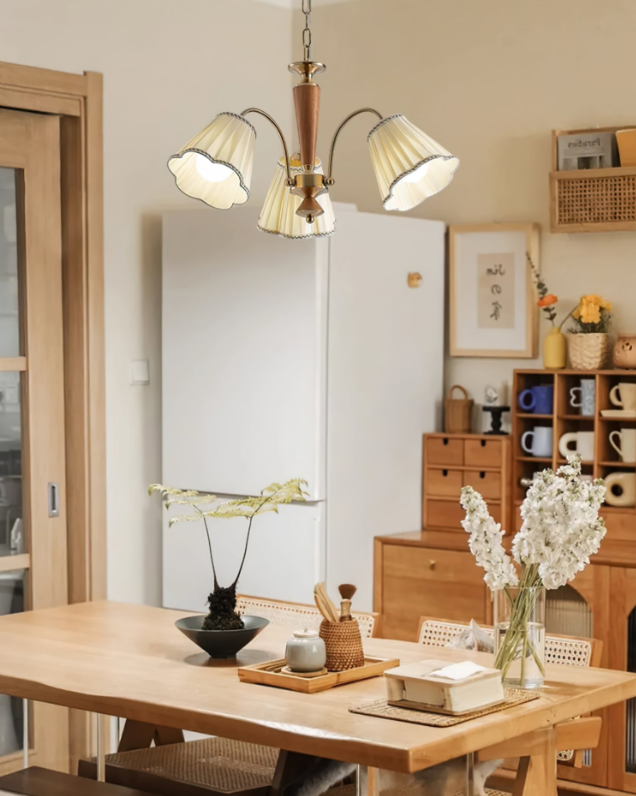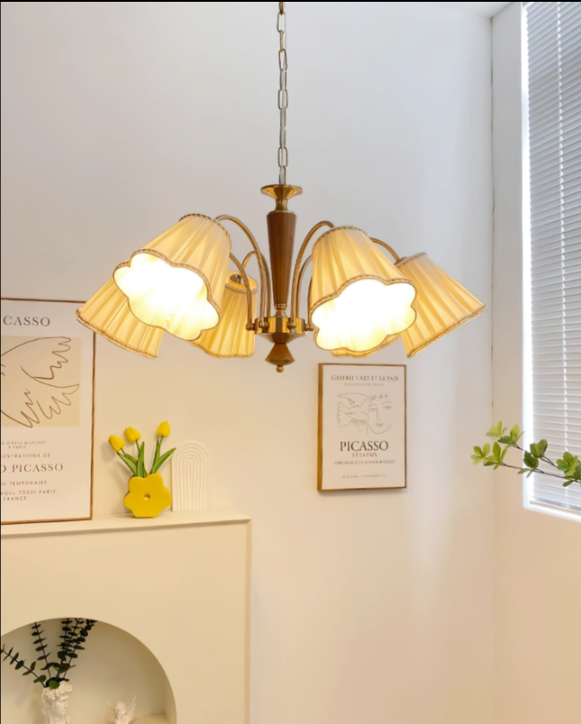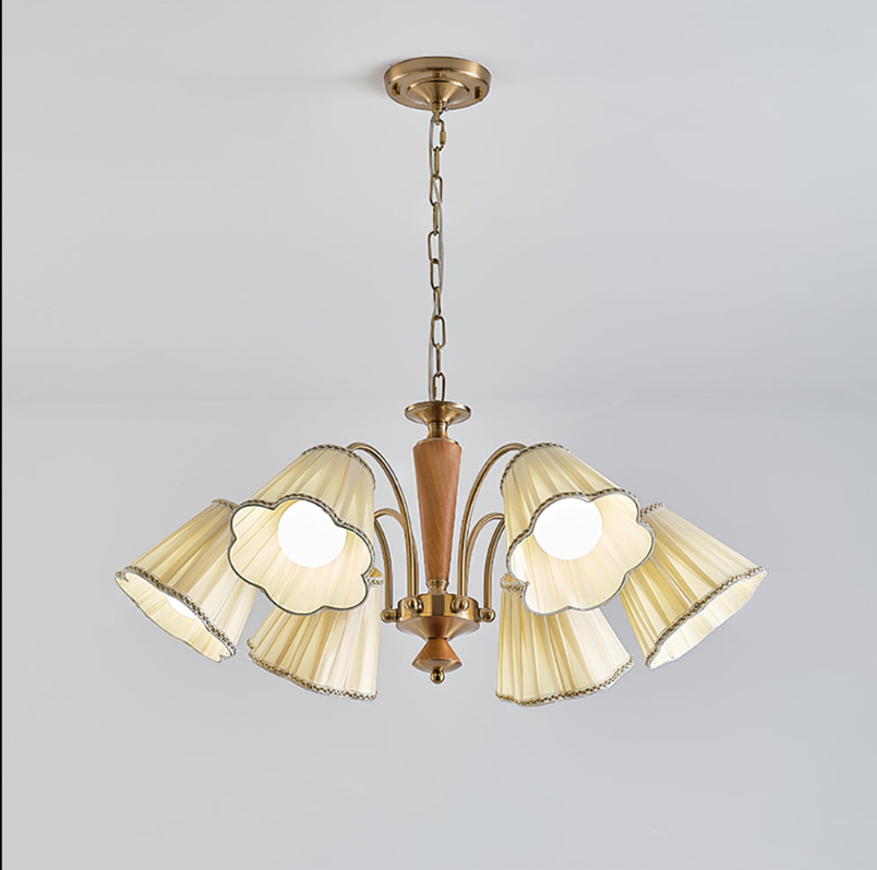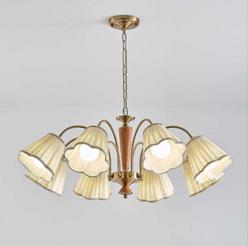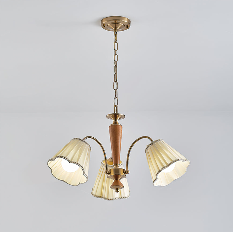 Antiker Kronleuchter für den Essbereich mit Stoffschirmen