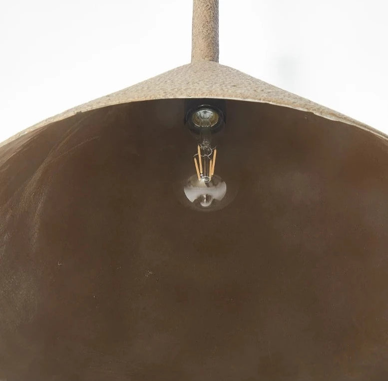 Abrace la belleza de la imperfección con nuestra lámpara colgante Wabi Sabiuna impresionante fusión de diseño moderno y encanto rústico. Esta singular lámpara de techo se integra sin esfuerzo en cualquier ambiente, ya sea su salón, dormitorio, comedor o cocina. Su acabado en metal envejecido de color beige oscuro añade un toque de discreta elegancia, convirtiéndola en una pieza central perfecta para cualquier espacio.
