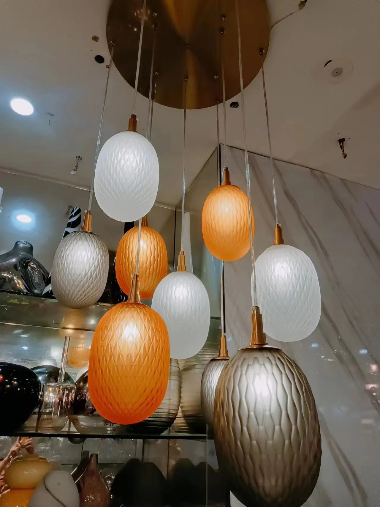 - Le lustre LED en verre s'intègre à tous les espaces et s'harmonise parfaitement avec votre salon, votre chambre, votre salle à manger, votre cuisine ou votre bureau.
