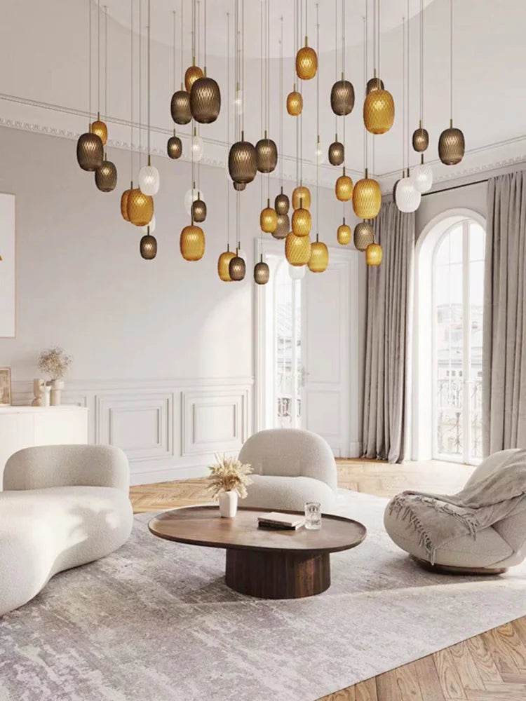 Lustre en verre à LED pour escalier et salon