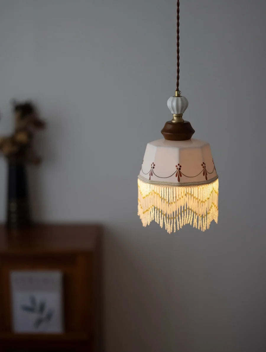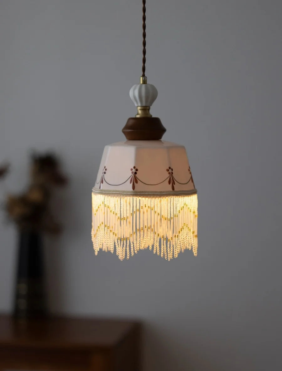 - La lampada a sospensione LED in rame e legno con nappina in ceramica biancasi adatta a qualsiasi ambiente, abbinandosi perfettamente al vostro soggiorno, camera da letto, sala da pranzo, cucina o studio.