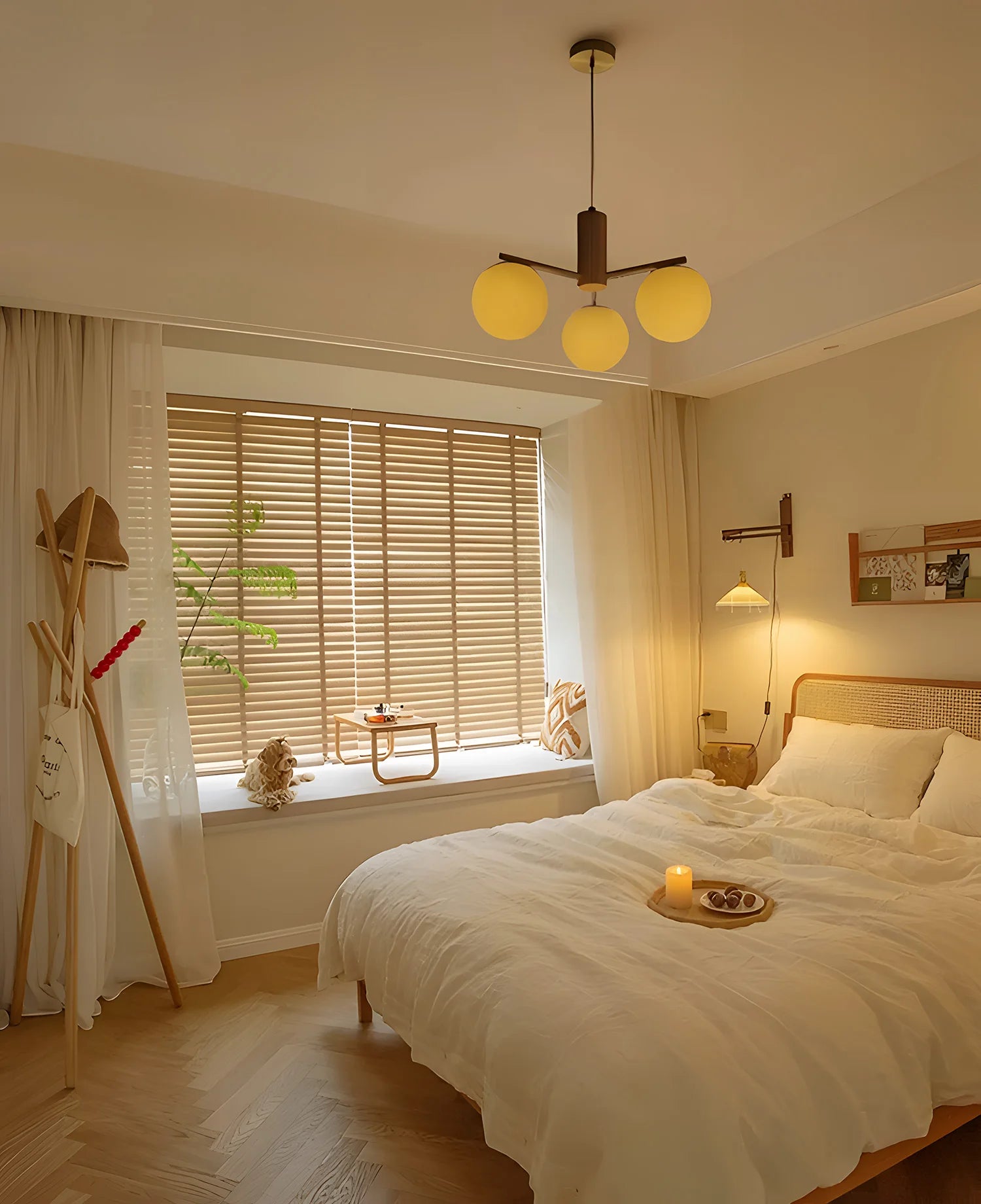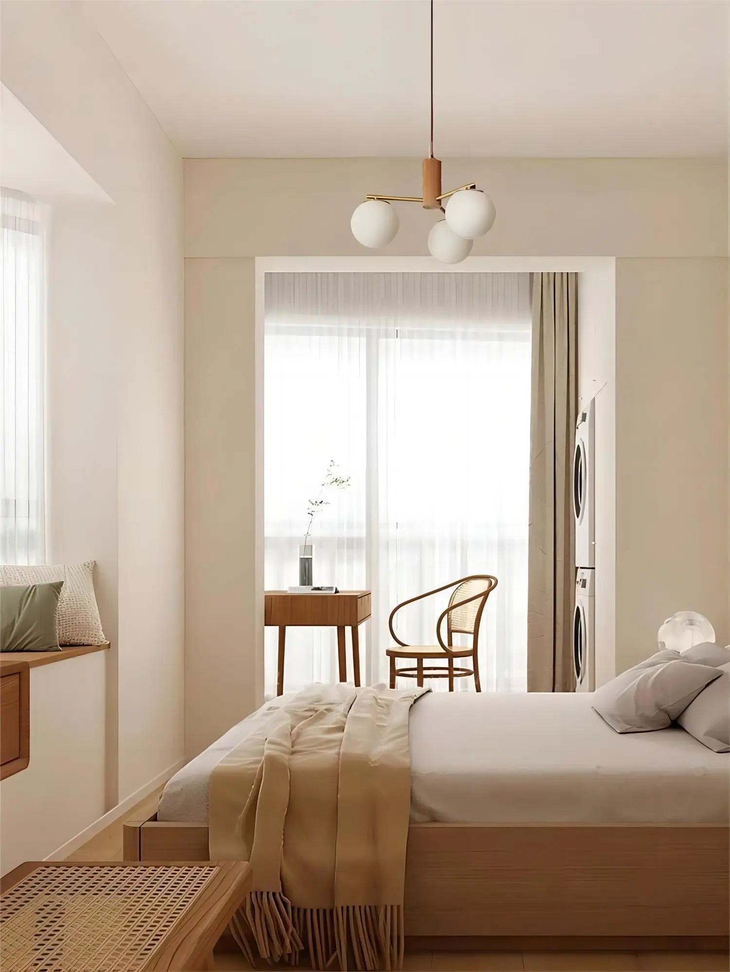 - Walnut brass round glass chandelier complements any space, pairing beautifully with your living room, bedroom, dining room, kitchen, or study.