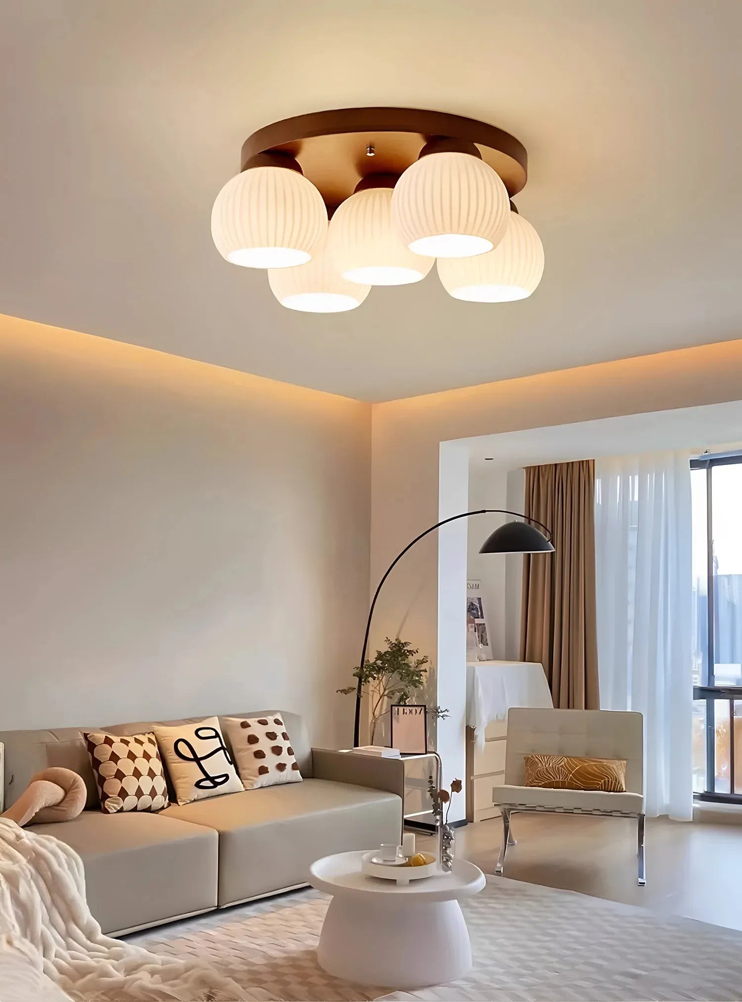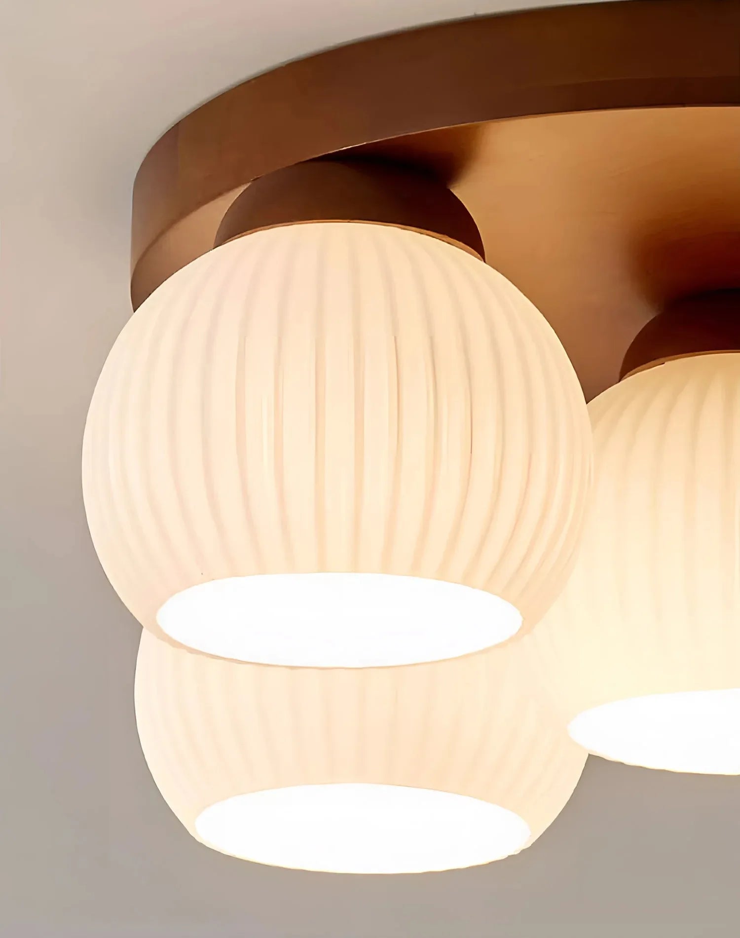 - Walnut art glass ceiling light complements any space, pairing beautifully with your living room, bedroom, dining room, kitchen, or study.
