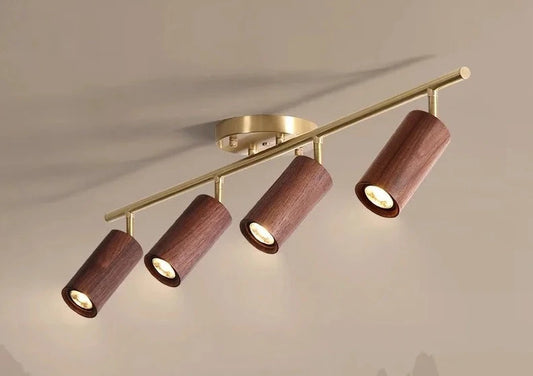 LUXELY modern taklampa i wabi-sabi valnötsträ och mässing