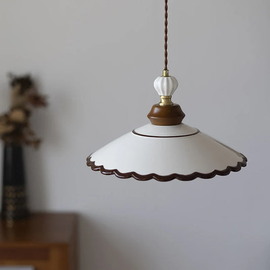 Vintage LED-pendellampa i keramik med mässingsbeslag