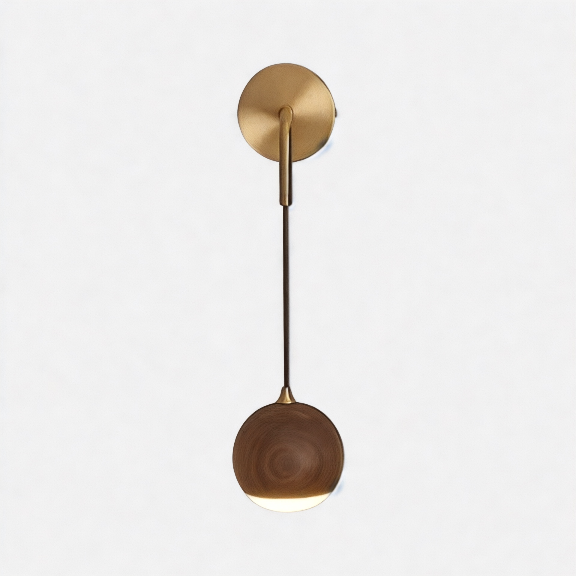 LUXELY vägglampa med rund boll i valnötsträ wabi-sabi modern